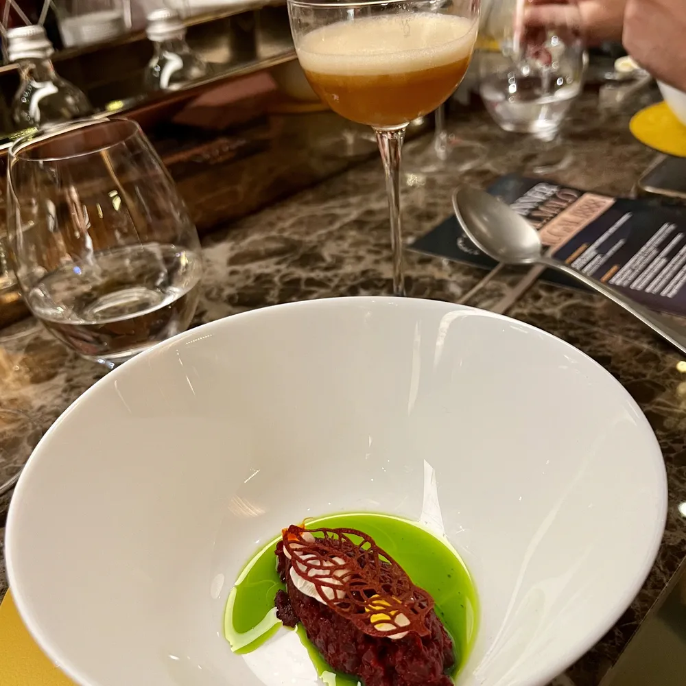 Si è trattato di un vero e proprio pairing con Luca che ci ha spiegato come degustare la tartare insieme al cocktail.
