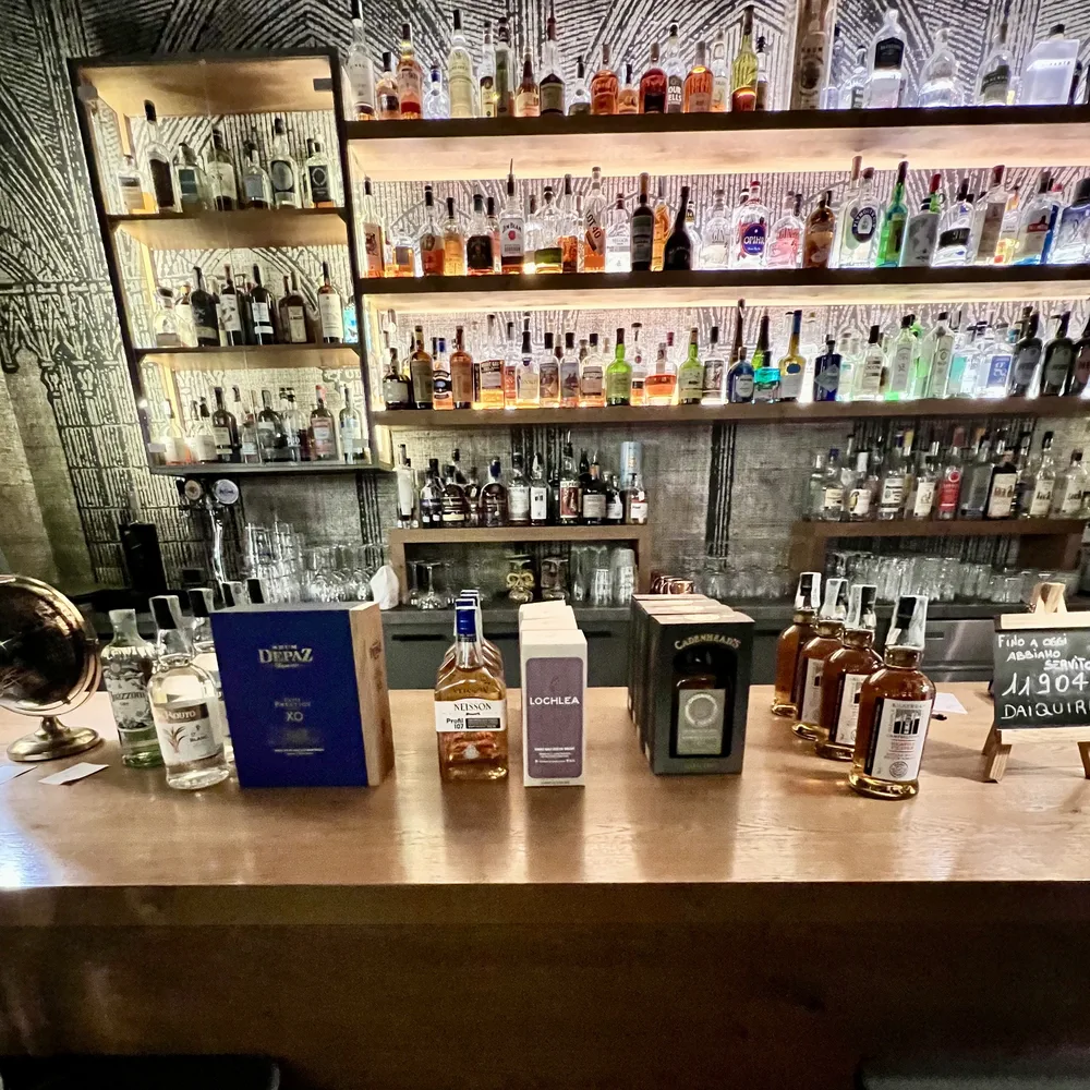 Tutto il locale è circondato da bacheche e mensole con bottiglie rare o ormai fuori commercio. Se cercate qualcosa di particolare vi consiglio assolutamente di visitarlo. Clima familiare, frequentato da amici del proprietario e da appassionati di distillati è il posto ideale per degustare un Daiquiri fatto come si deve. Simpatica la lavagnetta posizionata sul bancone dove fa mostra di sé una cifra che indica i Daiquiri realizzati dall’apertura (ammetto che ho contribuito a far salire quel numero).