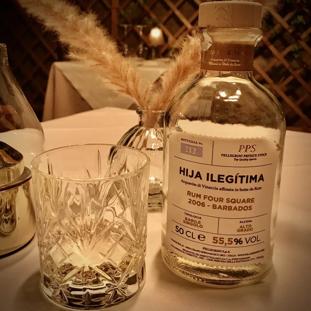 Il progetto Hija Ilegìtima ha lo scopo di valorizzare i distillati tipici italiani e nel corso degli anni ha visto la nascita di diverse varianti. La bottiglia che ho provato prende vita da un’acquavite di vinaccia con distillazione discontinua a bagnomaria e caldaietta a corrente di vapore. Dopo circa 24 mesi di invecchiamento, si procede ad un affinamento di circa 6 mesi in barili di Rum della selezione PPS – Origini (precedentemente PPS – Pellegrini Private Stock). In questo caso parliamo di botti ex Foursquare. L’imbottigliamento avviene in bottiglie stile “vecchia farmacia” a tiratura limitata. Quella in foto è la 212.