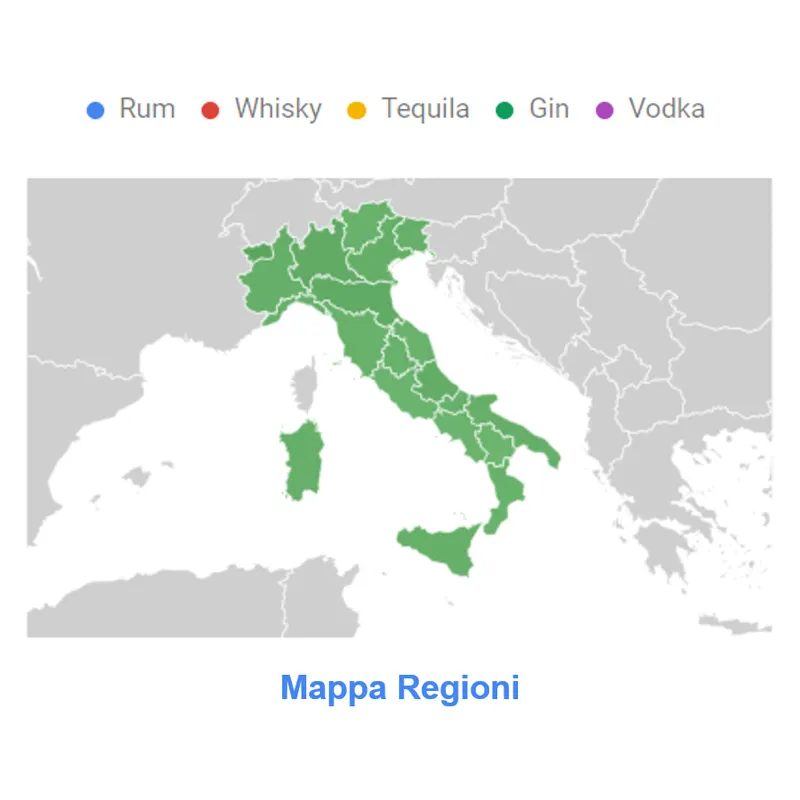 Il Gin è il distillato più ricercato in tutte le regioni italiane. Nella galleria proposta sotto, vi do uno spaccato per singolo distillato. Fermo restando il dominio del Gin, ogni regione ha le sue peculiarità.