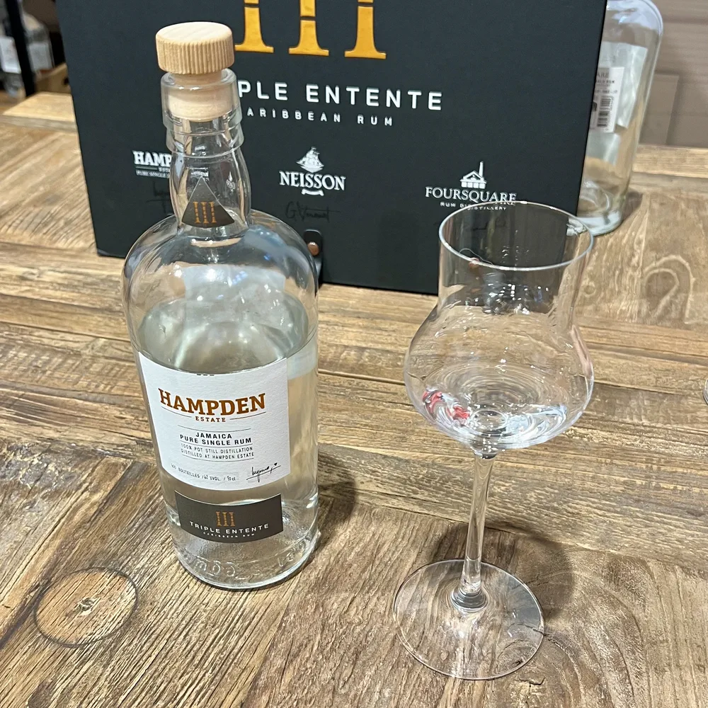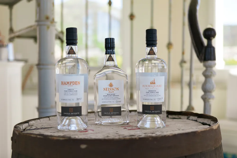 Il progetto Triple Entente, presentato a febbraio 2024 durante il Velier Live, riunisce tre rum bianchi di distillerie indipendenti: Foursquare, Neisson e Hampden. Il cofanetto, limitato a 600 esemplari, celebra la diversità culturale e produttiva di Barbados, Martinica e Giamaica. Una materia prima (zucchero di canna), tre storie culturali differenti con metodi produttivi diversificati a partire dalla lavorazione (succo di canna, melasso o mix di entrambi) fino all’utilizzo di tre diversi alambicchi. Il risultano è un rum bianco con tre diverse espressioni organolettiche.